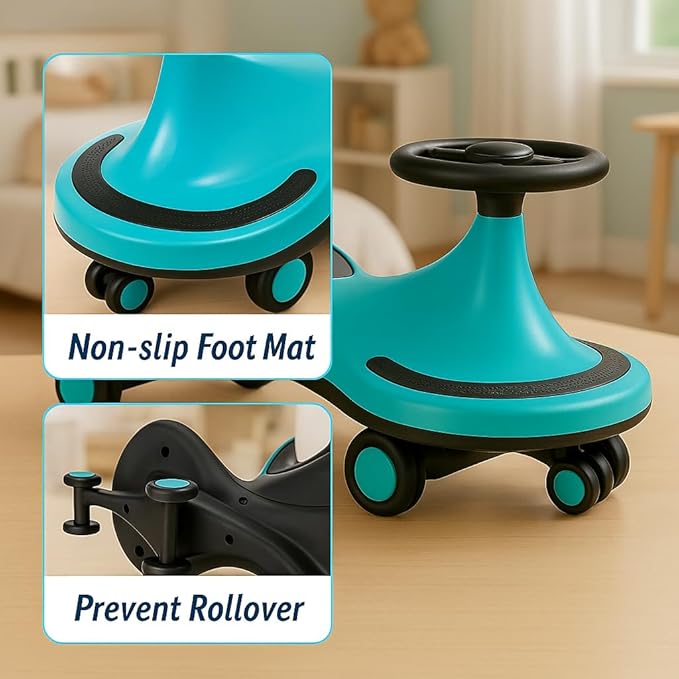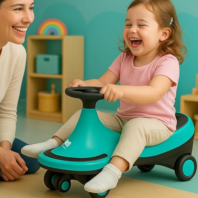 This kids’ swing car boasts premium designs in vibrant colors and shapes. Built with high-quality materials and PU wheels for a smooth ride, it offers spacious seating for comfort. Ideal for indoor and outdoor play, it helps develop balance and coordination while keeping kids active.